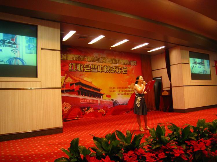 9月25日下午,公司參加了省家裝協(xié)會舉辦的慶祝建國60周年紅歌會暨中秋聯(lián)歡會,櫥柜部陸美勤進(jìn)行聲情并茂的詩朗誦《問候您,祖國》。博得臺下的與會人員的陣陣掌聲。此外也在眾多的歌舞節(jié)目中脫穎而出獲得優(yōu)勝獎。